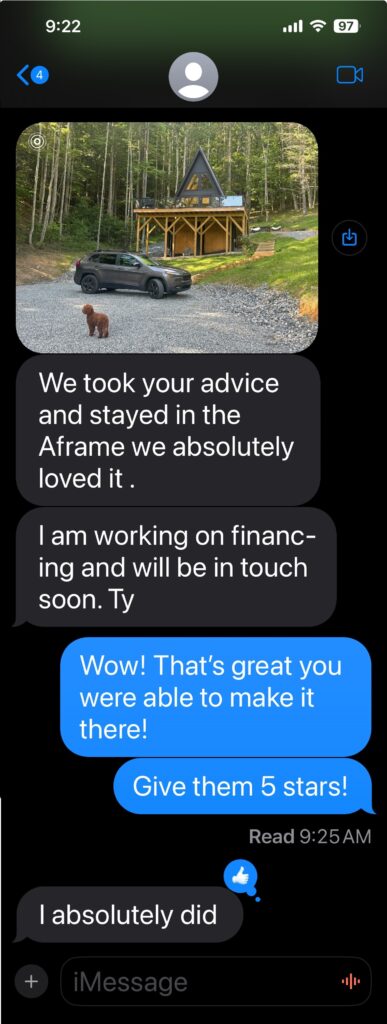 Whether nestled in a peaceful forest, perched on a mountainside, or tucked away by a serene lake, your 7 Day Aframe STR let’s you host unforgettable rental experiences.  It’s well known – A-frames are among the most sought after for Short Term Rental properties, attracting high end guests with their charm and uniqueness.